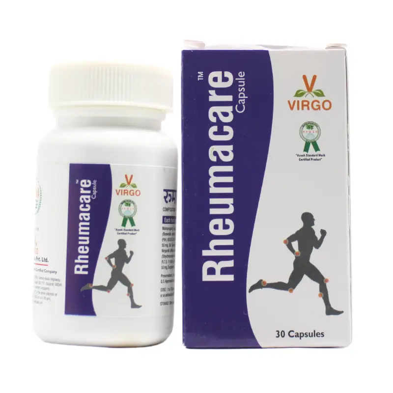 Unjha Rheumacare Capsule is an Ayurvedic herbo-mineral formulation designed to reduce joint pain, inflammation, and stiffness while improving overall joint strength and flexibility. It acts as a disease-modifying agent that helps restore mobility, prevent bony deformities, and support musculoskeletal health. The powerful combination of Guggulu, Shallaki, and Maharasnadi Kwath helps enhance blood circulation and functional recovery, making it an effective choice for managing arthritis, sciatica, frozen shoulder, and gout.